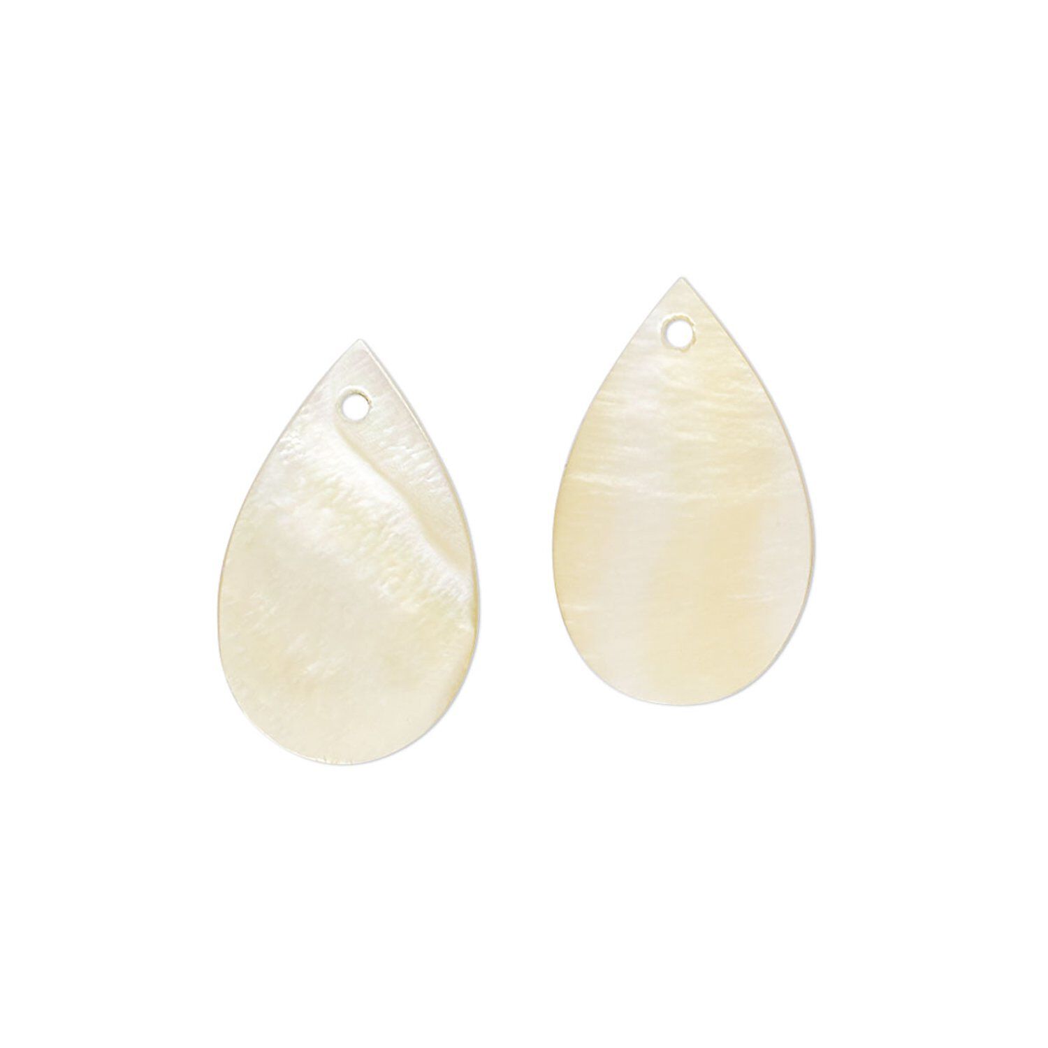 Drop, gold lip shell (natural), 18x11mm hand-cut top-drilled teardrop, Mohs hardness 3-1/2. Sold per pkg of 2.