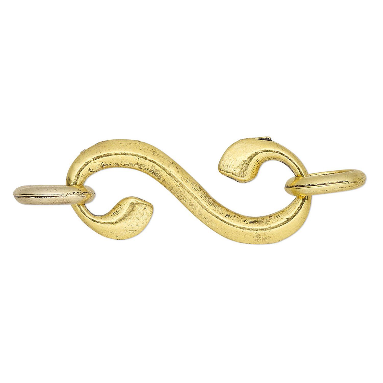 Clasp hook 1pkg10 "pewter" (zinc alloy), 34x15mm swirl, antique gold-finished 2-strand