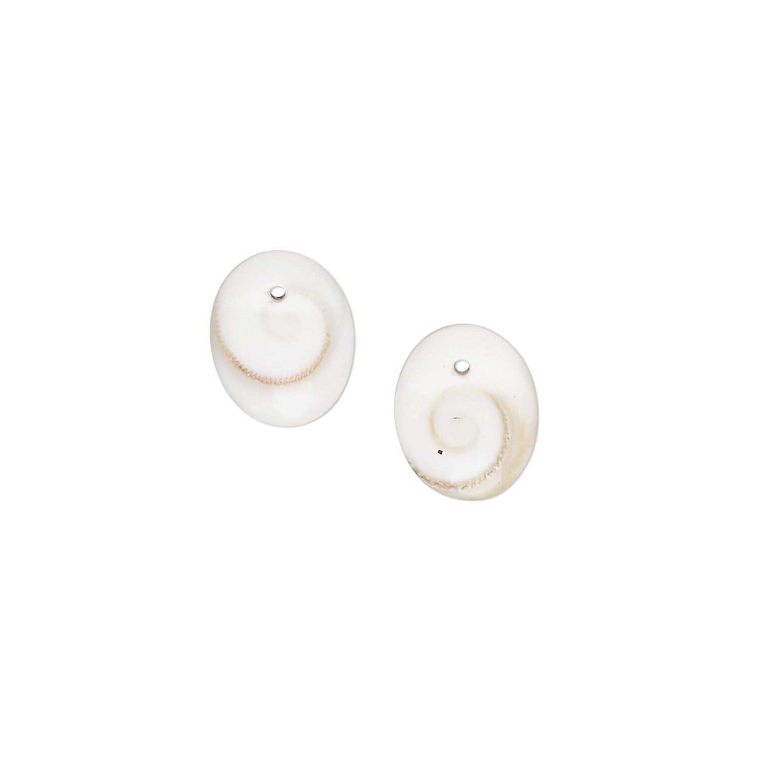 Drop, tapestry turban shell (assembled), white and black, 10x8mm oval, Mohs hardness 3-1/2. Sold per pkg of 2.