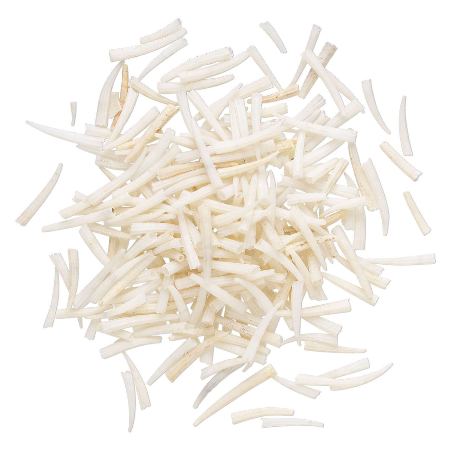 Component mix, Dentalium shell (bleached), 15-30mm undrilled. Sold per 1-ounce pkg, approximately 225-255 shells.