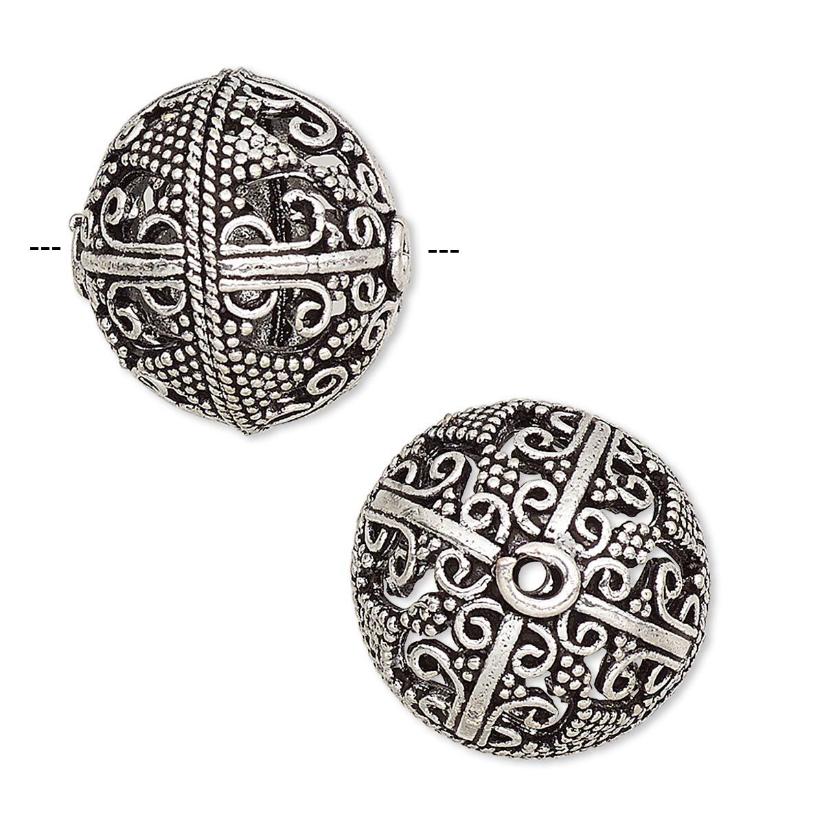 Antique silver-plated bead gives everyday jewelry the look of sterling silver at an economical price.