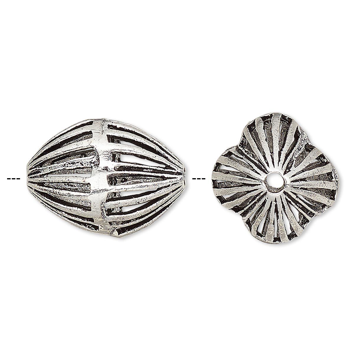 Bead, antiqued silver-finished brass, 20x16mm open fluted oval. Sold per pkg of 2.