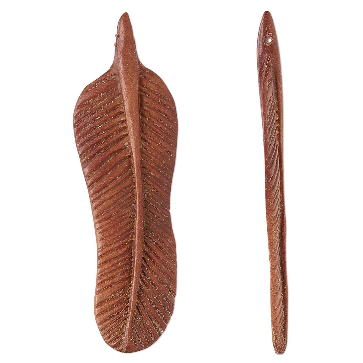 Focal, sawo wood, 41x13mm hand-cut side-drilled 2-sided carved feather. Sold individually.