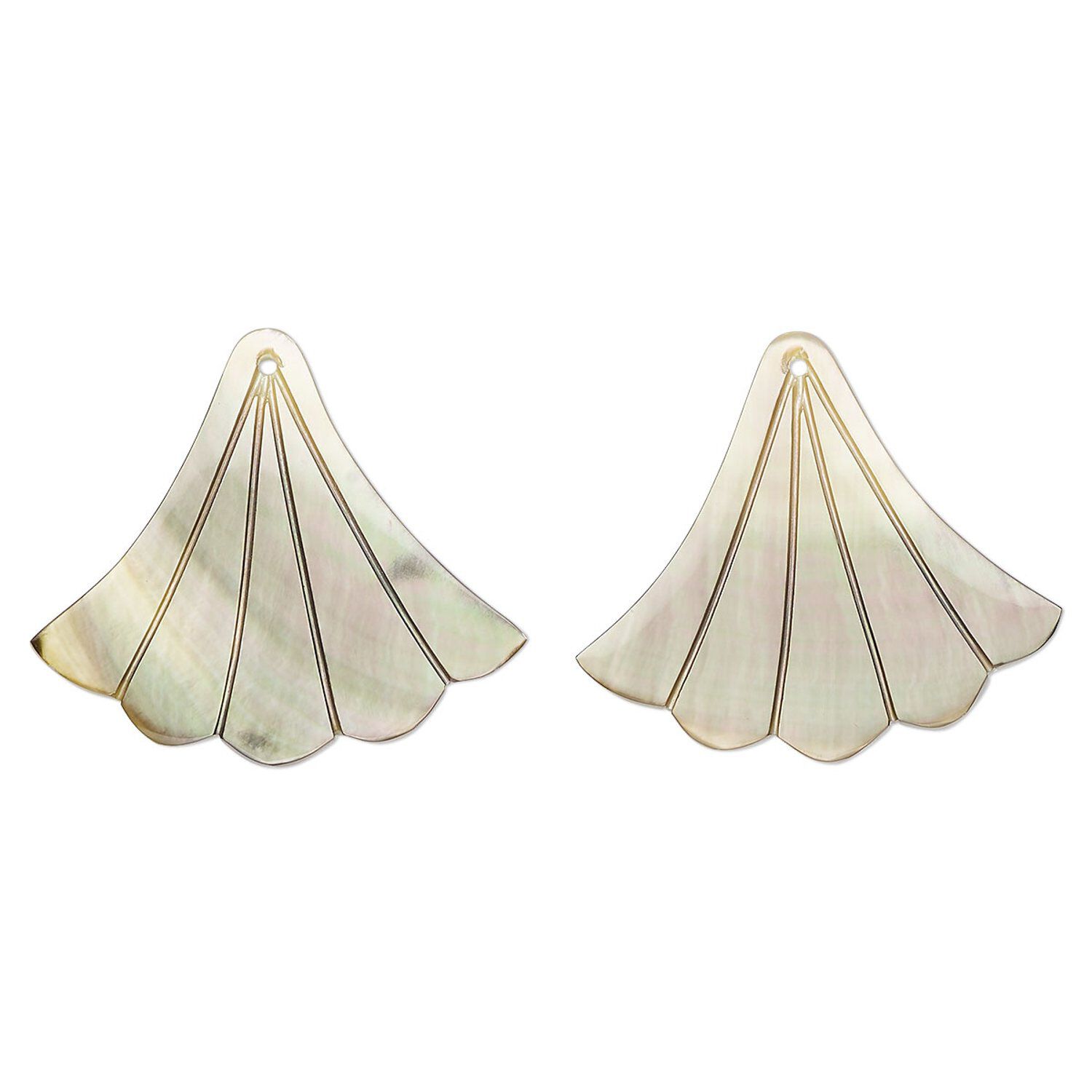 Focal, black lip shell (natural), 33x29mm hand-cut top-drilled single-sided carved fan, Mohs hardness 3-1/2. Sold per pkg of 2.