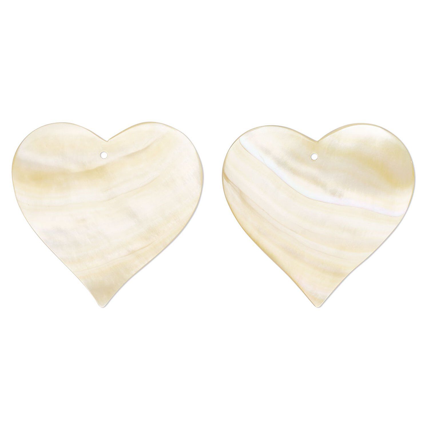 Focal, gold lip shell (natural), 32mm hand-cut top-drilled single-sided heart, Mohs hardness 3-1/2. Sold per pkg of 2.