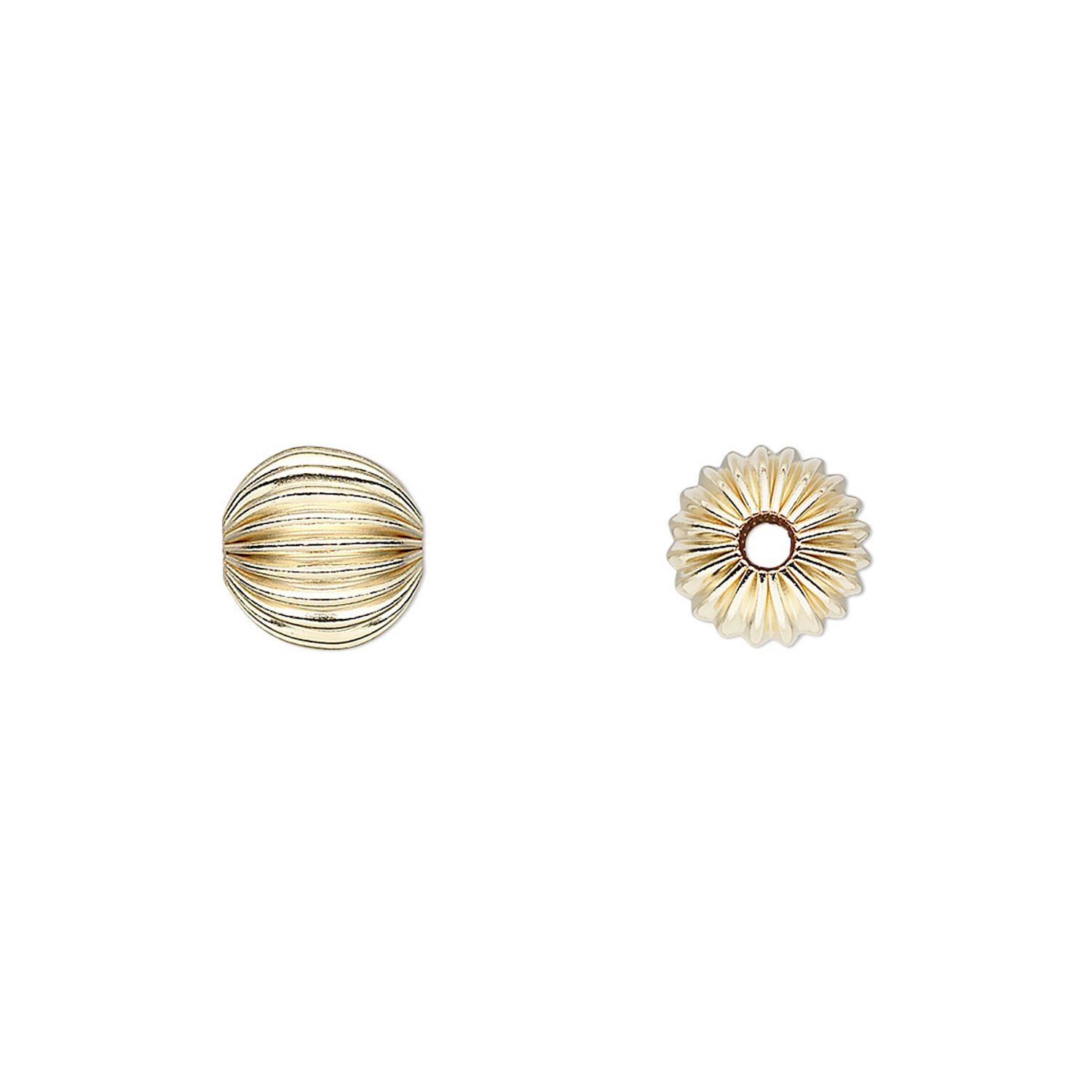 Gold-filled corrugated round beads bridge the gap between gold-plated and 14Kt gold. Gold-filled items are made by combining a layer, or layers, of gold alloy to a base metal, then rolling or drawing the metal to the desired thickness and shape. It has a long life and can be worn by most people without allergic reactions.