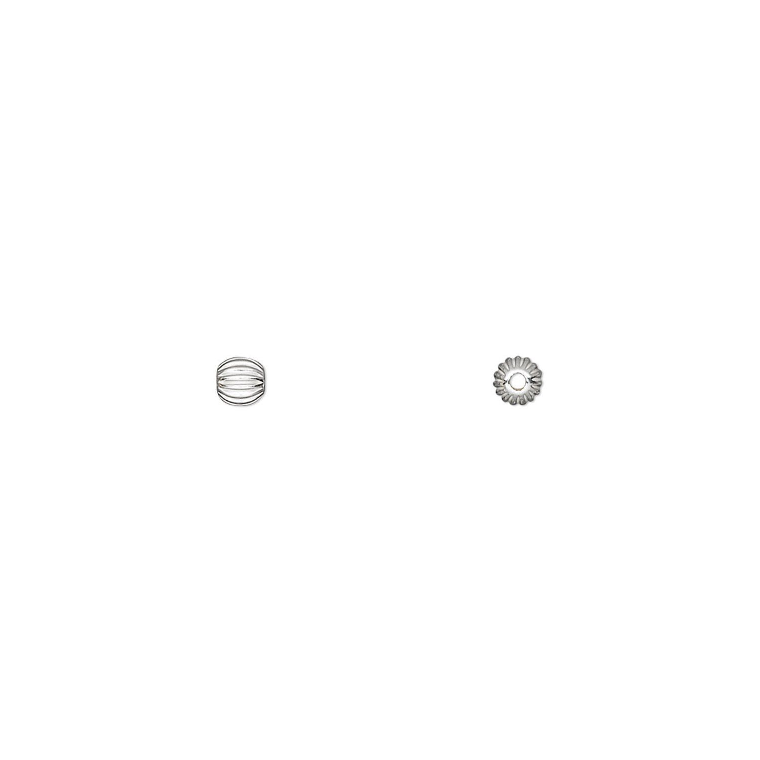 Bead, sterling silver, 3mm seamless corrugated round. Sold per pkg of 10.