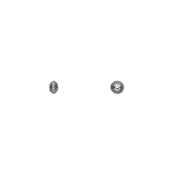 Bead, antiqued sterling silver, 3.5x2mm corrugated saucer. Sold per pkg of 10.