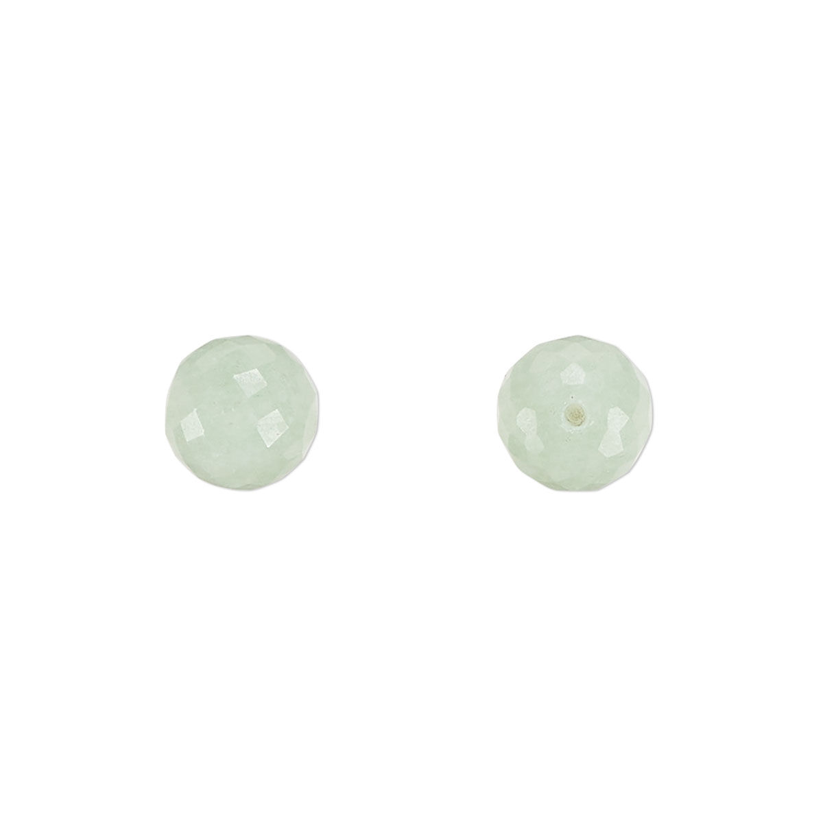 Green aventurine 1pkg2, hand-cut half-drilled faceted round bead natural 8mm