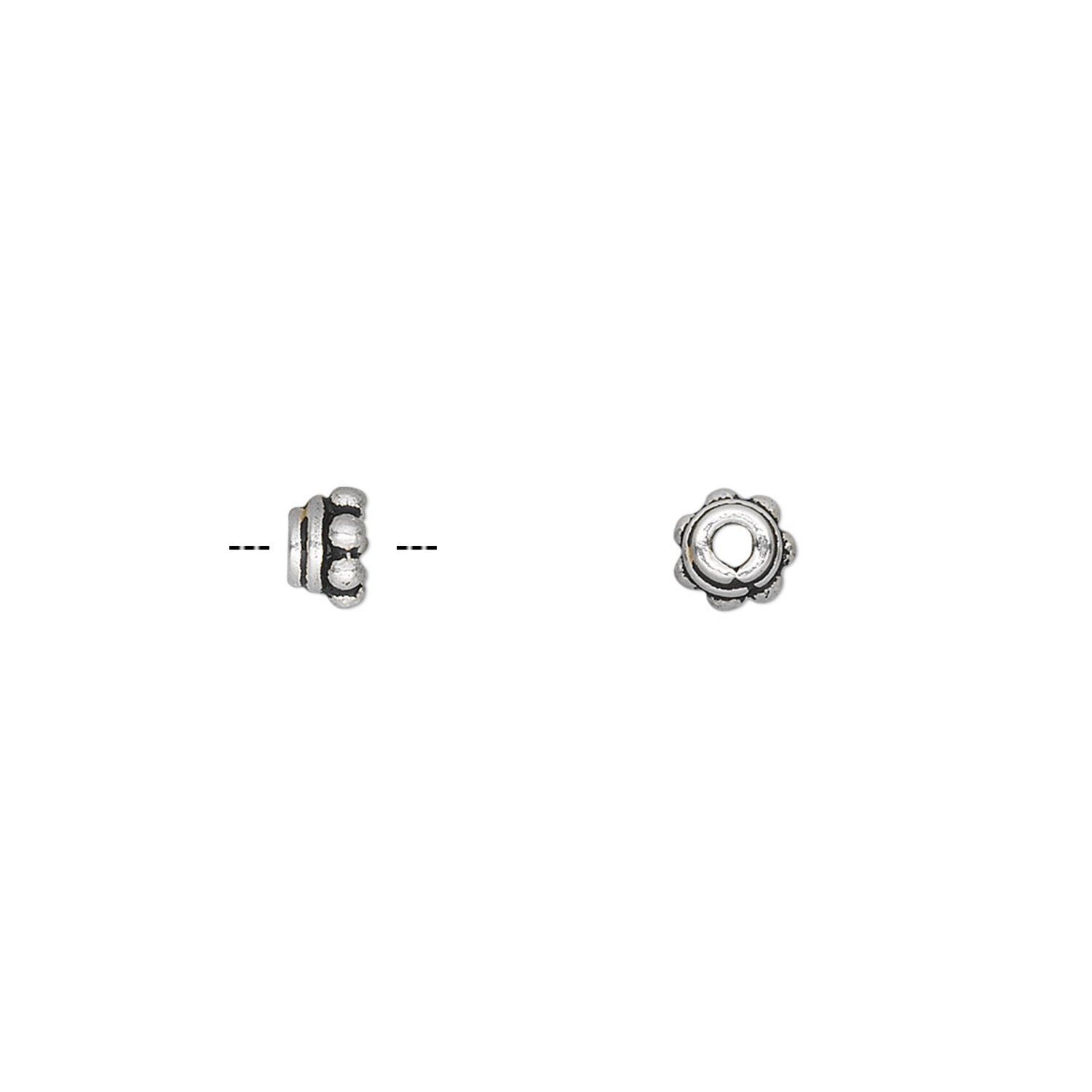 Bead cap, antiqued sterling silver, 5x3mm beaded round, fits 4-6mm bead. Sold per pkg of 4.