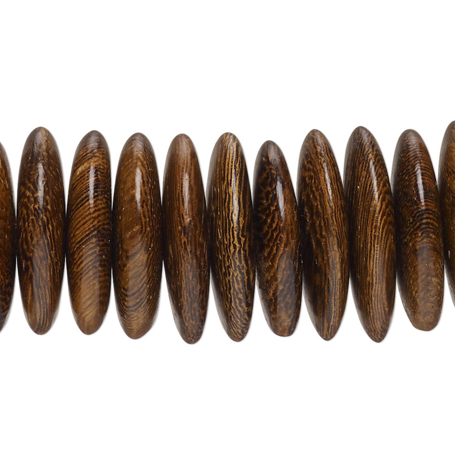 Bead, robles wood (waxed), pkg/8 inches, medium brown, 19x4.5mm-21x5.5mm hand-cut rondelle.