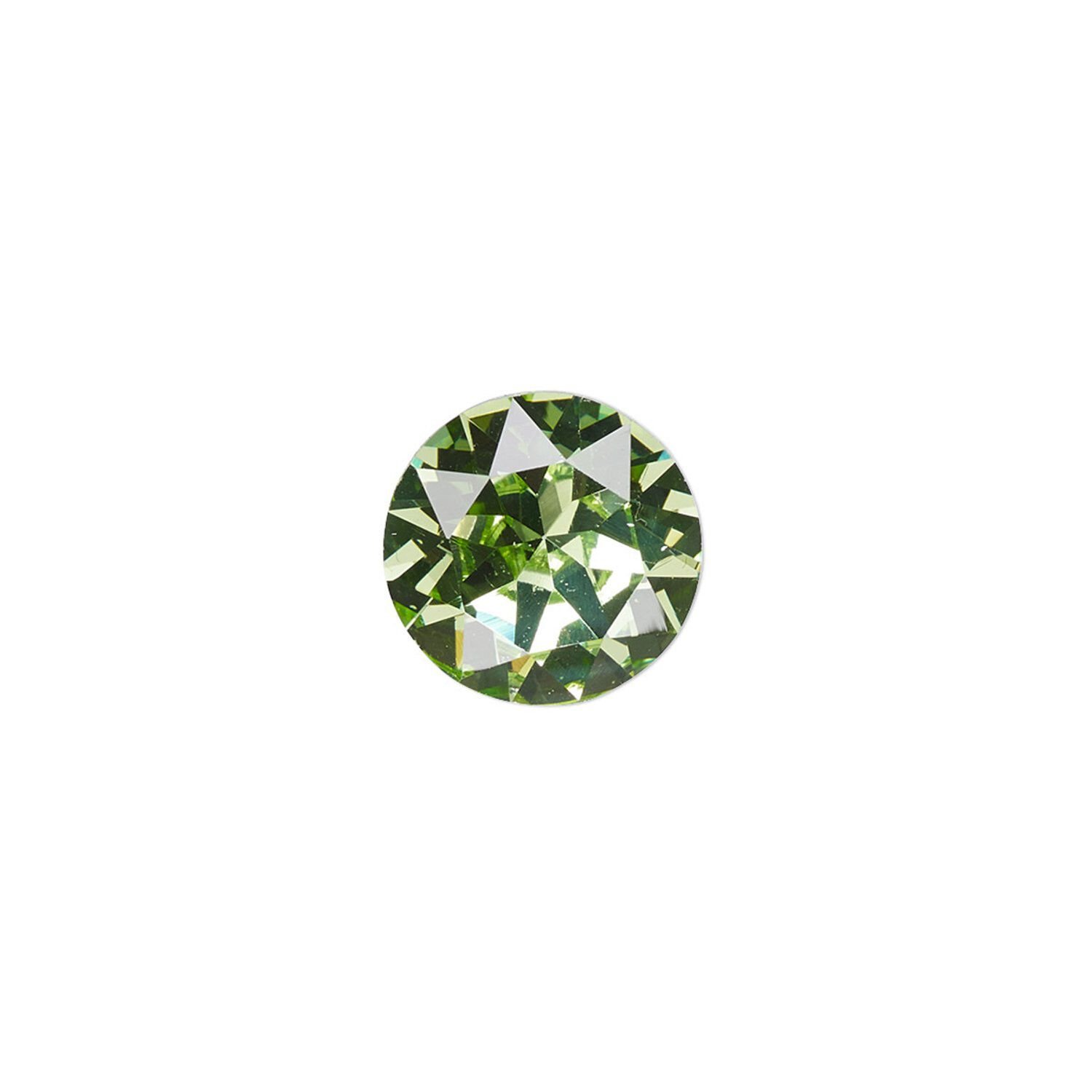 Chaton, crystal rhinestone, peridot green, foil back, 12.97-13.22mm faceted round, SS55. Sold per pkg of 2.
