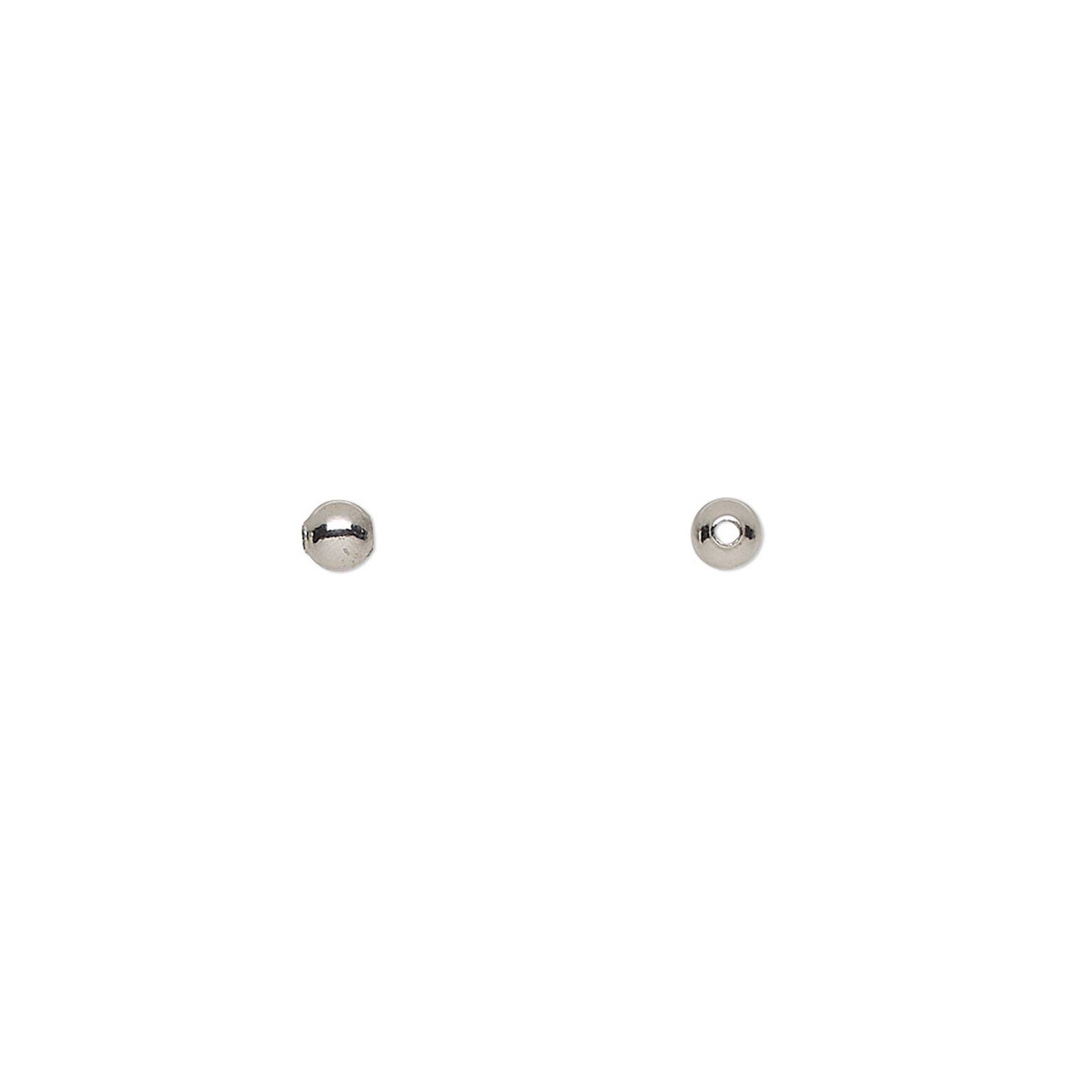 Bead, stainless steel, 3mm round. Sold per pkg of 10.