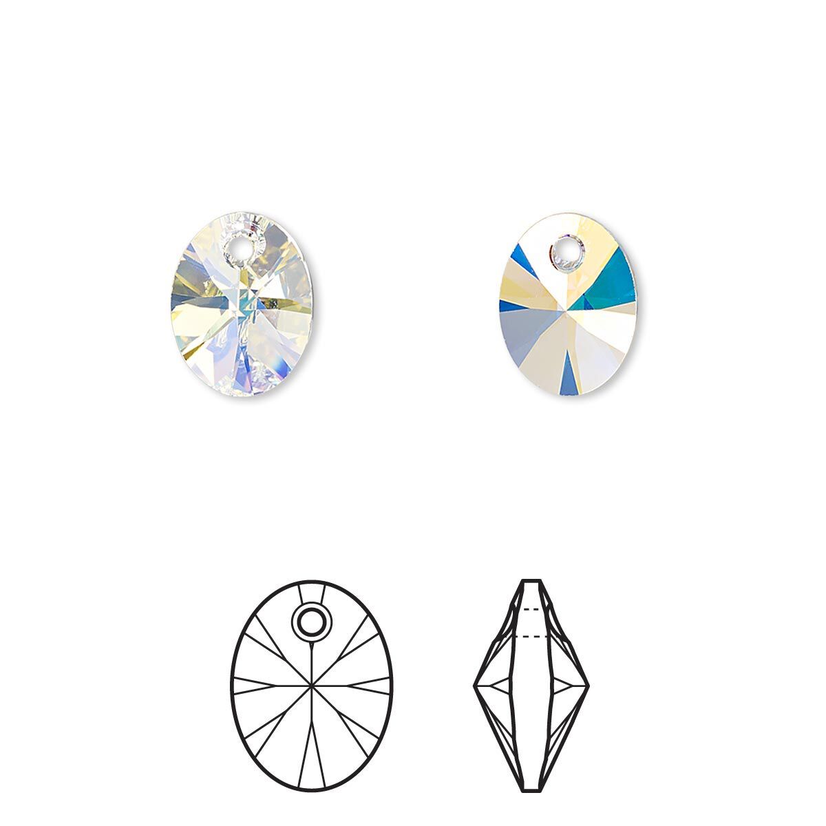 Drop 192pk crystal AB, Swarovski® 10x8mm pendant mini oval 6028