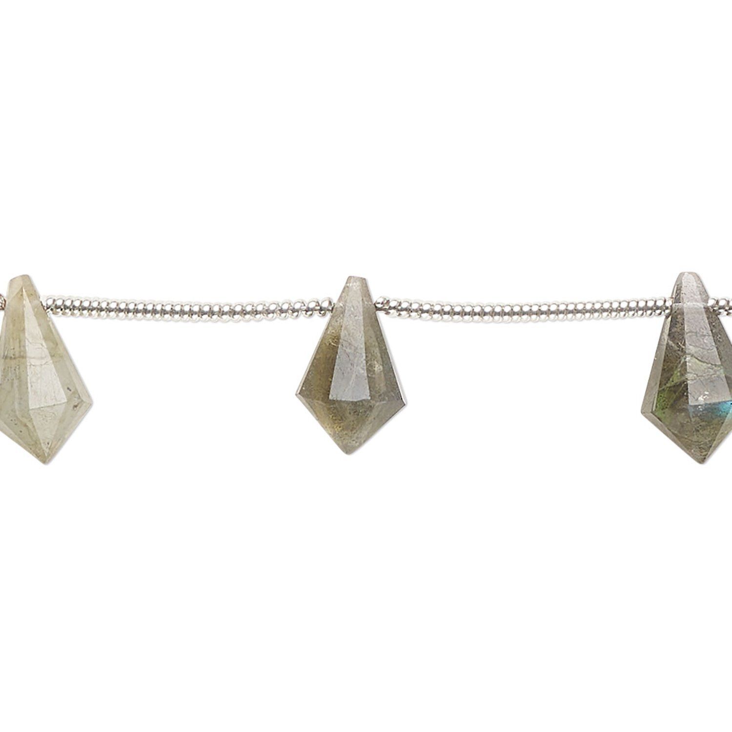 Faceted point beads blend the classical elegance of teardrops and the sleek modernity of the point shape. Give a high-end look to jewelry designs with high-quality precision-cut labradorite gemstones. Light refraction in the deeps layers of labradorite produces thrilling luminescent flashes of blues, violets and greens.
