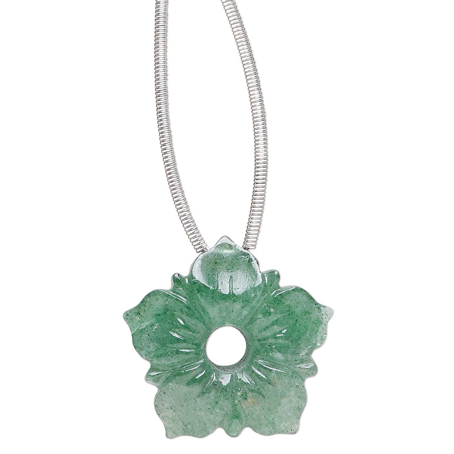 Green aventurine is hand-carved into a flower shape, perfect for nature-themed designs. Group several together for fantastic floral-inspired necklaces and bracelets, or use single beads as earing drops and dainty pendants. The 4mm center hole offers even more embellishment possibilities.