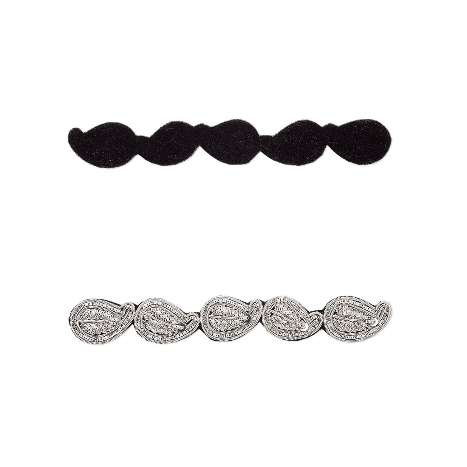 Sew-on component, velveteen and silver-finished copper French wire, black, 5-1/2 x 3/4 inch with leaf design. Sold individually.