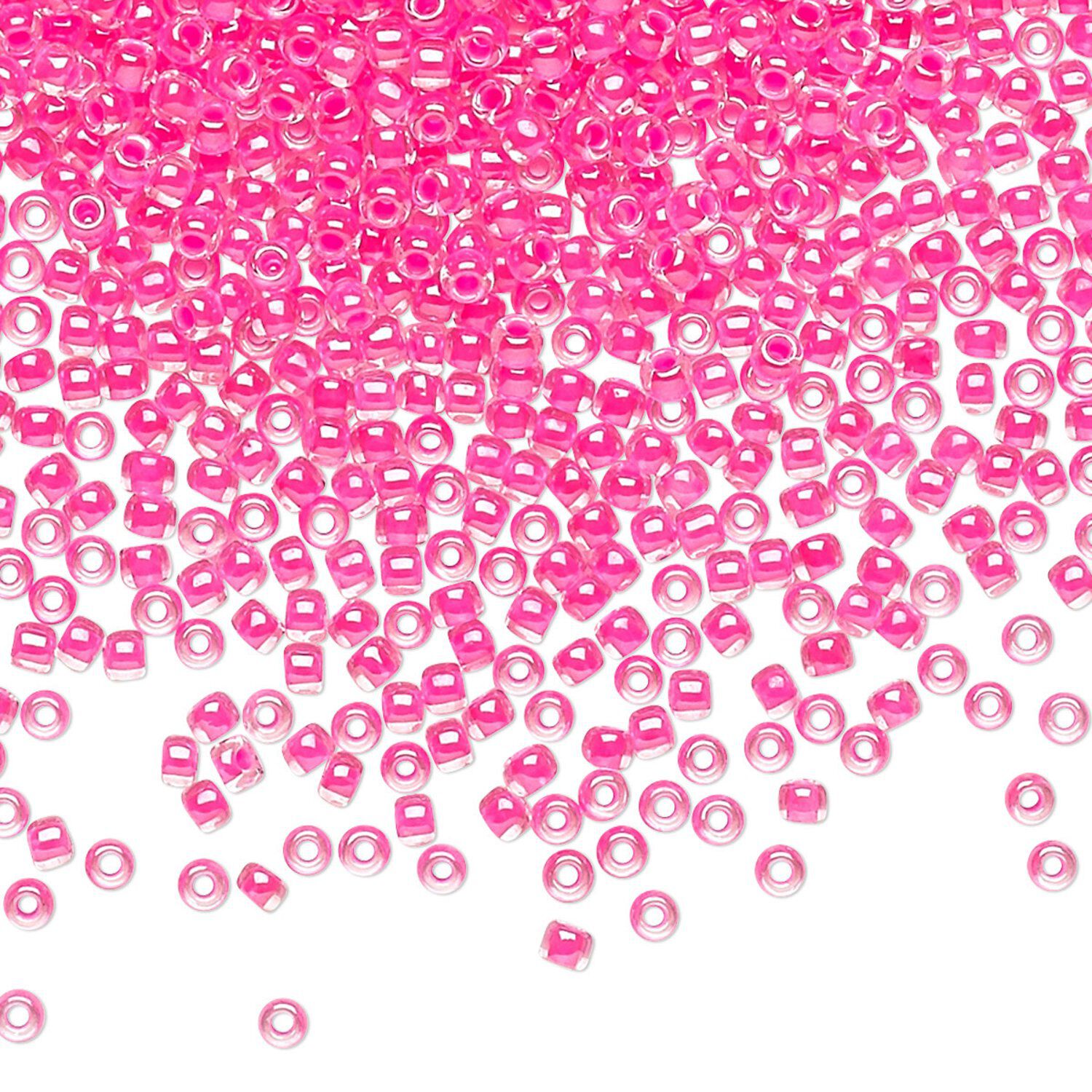 Seed bead, TOHO BEADS®, glass, pkg/250g, #11 round, translucent luminous inside color neon pink (TR-11-978).