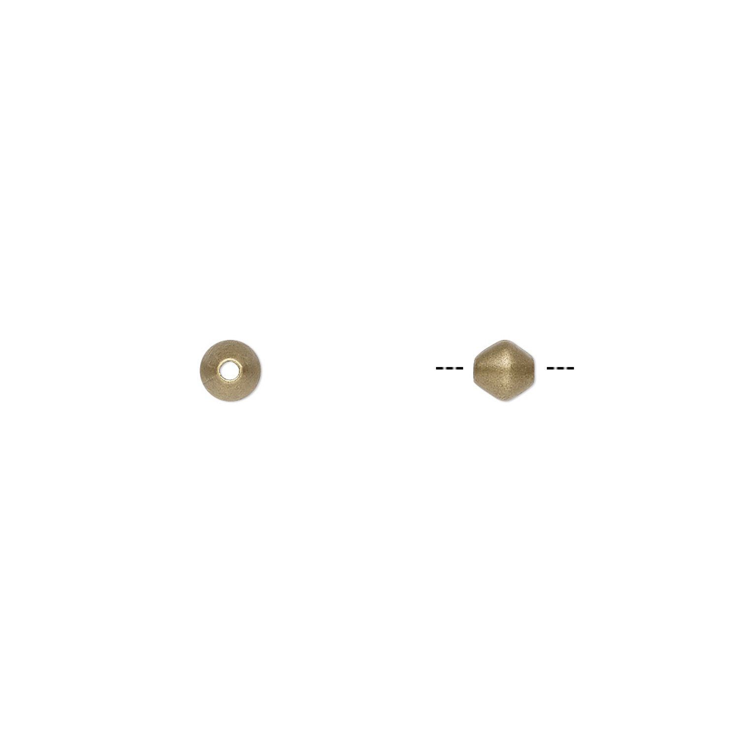 Bead, antique brass-plated brass, 4mm bicone. Sold per pkg of 100.