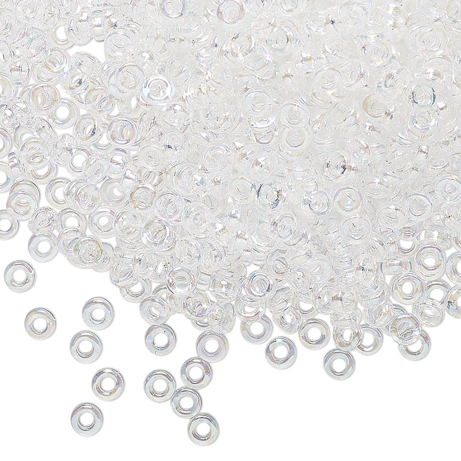 Seed bead, Miyuki, glass, pkg/50g, 3x1.3mm spacer rondelle, translucent AB clear, (SPR3-250).