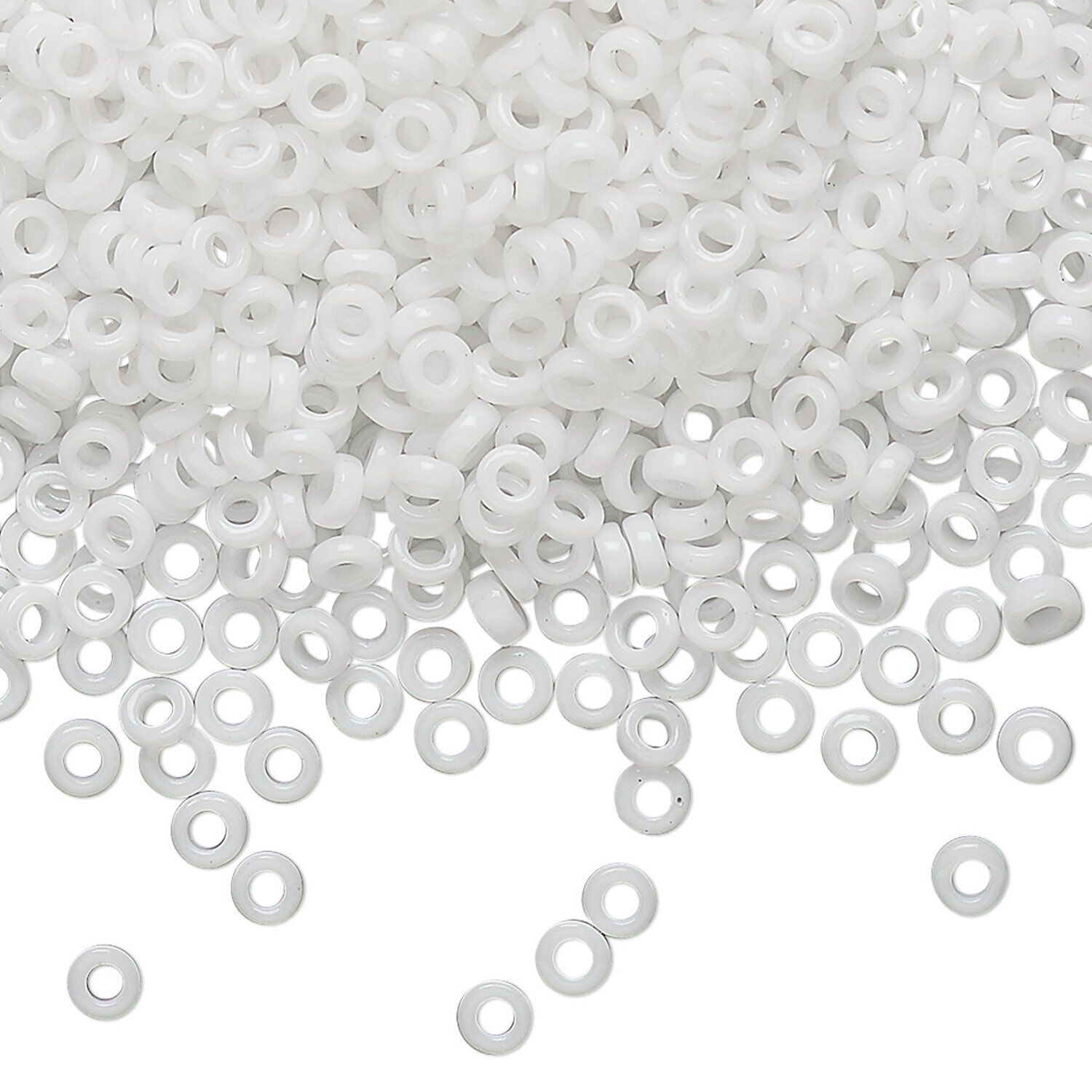 Seed bead, Miyuki, glass, pkg/50g, 3x1.3mm spacer rondelle, opaque white, (SPR3-402).
