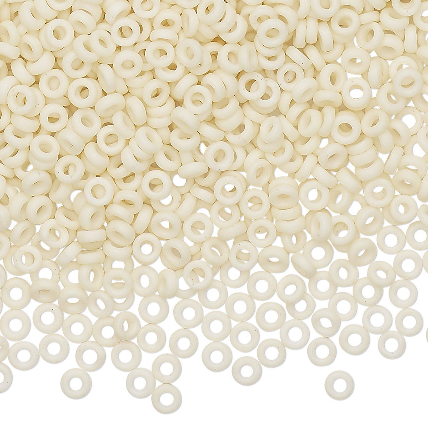 Seed bead, Miyuki, glass, pkg/10g, 3x1.3mm spacer rondelle, opaque matte cream, (SPR3-2021).
