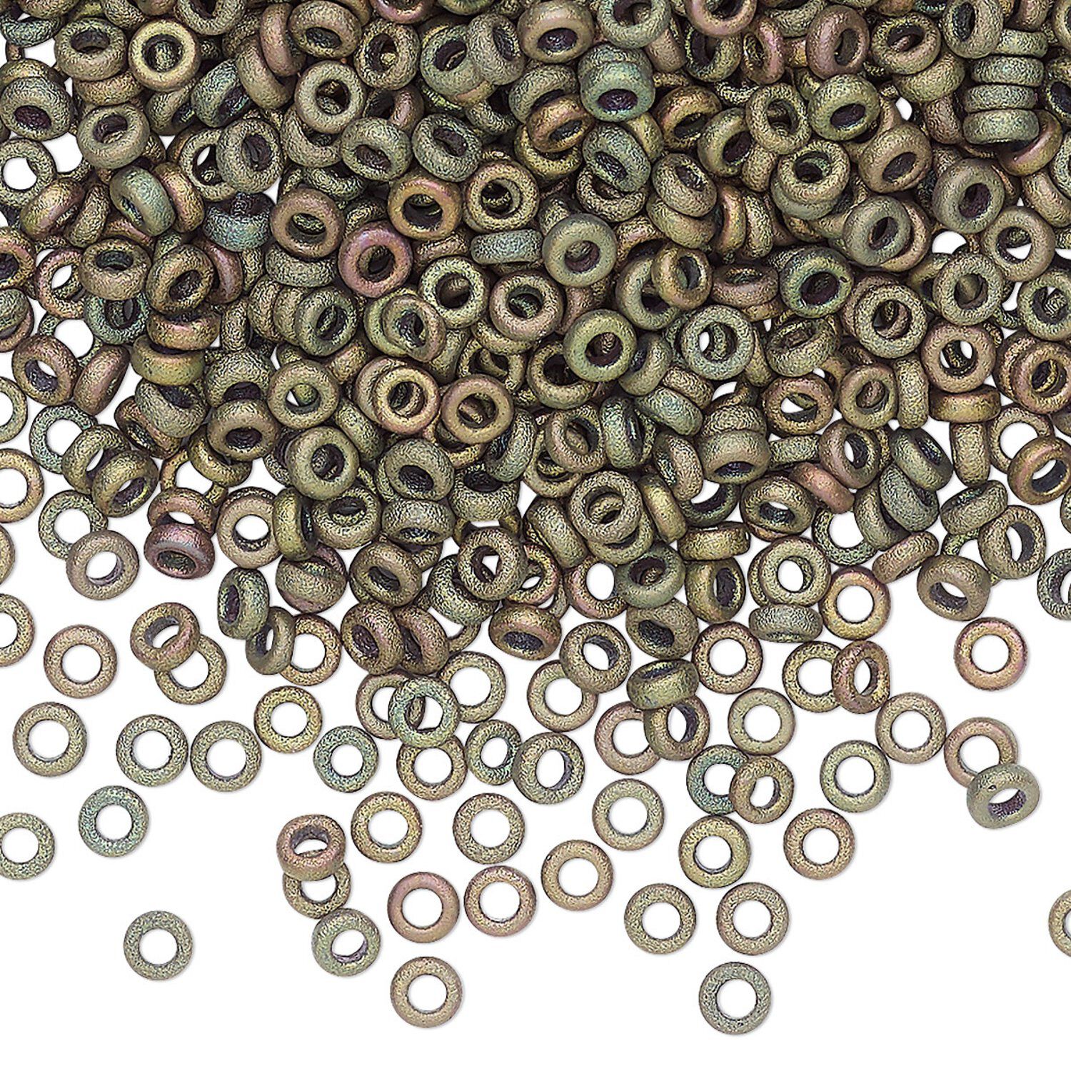 Seed bead, Miyuki, glass, pkg/50g, 3x1.3mm spacer rondelle, opaque iris khaki, (SPR3-2035).