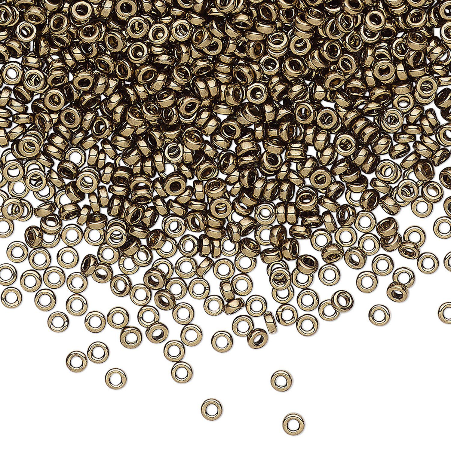 Seed bead, Miyuki, glass, pkg/10g, 2.2x1mm spacer rondelle, opaque metallic dark bronze, (SPR2.2-457).