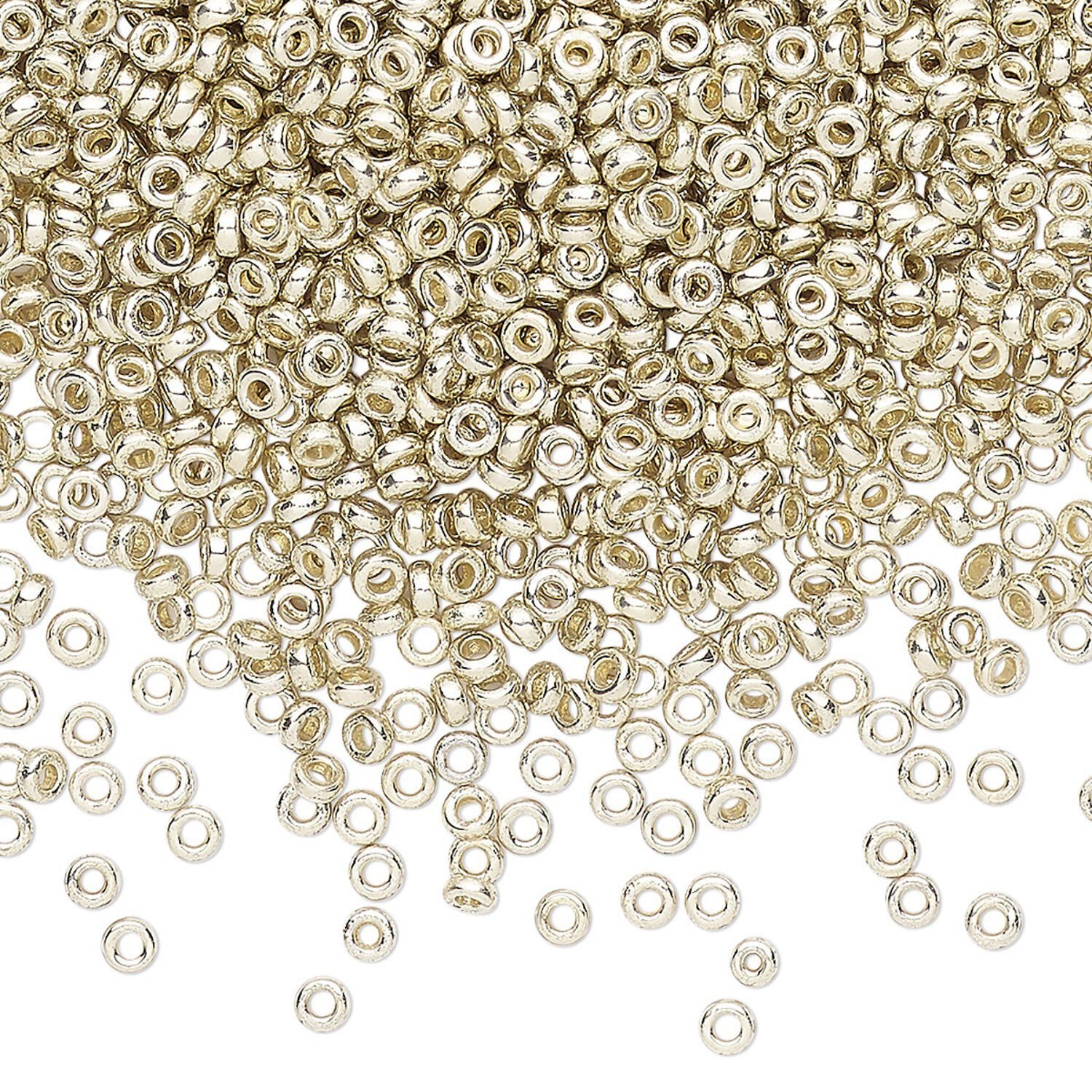 Seed bead, Miyuki, glass, pkg/10g, 2.2x1mm spacer rondelle, opaque brass-plated, (SPR2.2-4201).