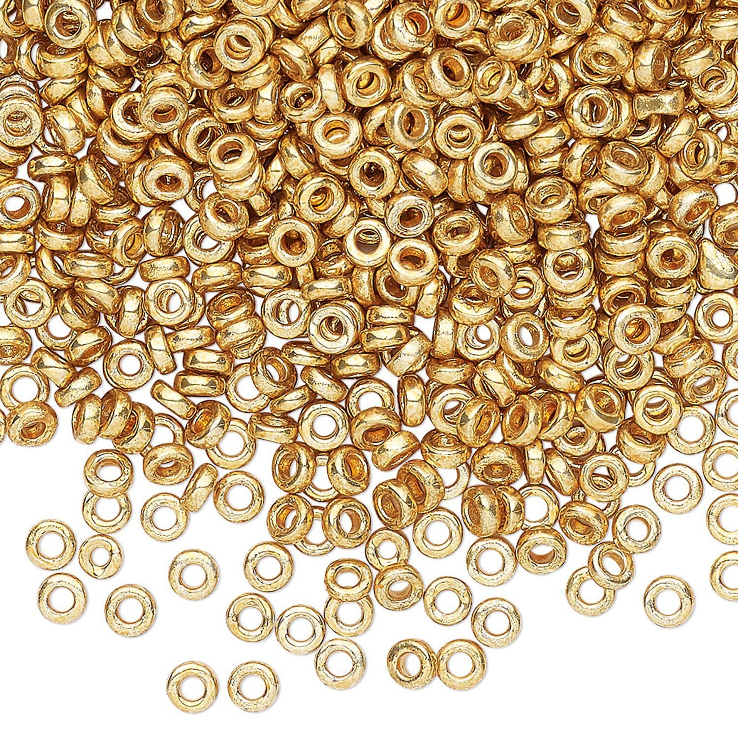 Seed bead, Miyuki, glass, pkg/50g, 3x1.3mm spacer rondelle, opaque gold finish, (SPR3-4202).