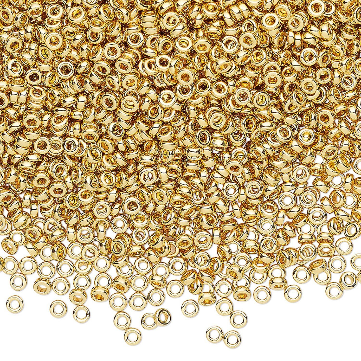 Seed bead, Miyuki, glass, pkg/4g, 2.2x1mm spacer rondelle, opaque 14Kt gold-plated, (SPR2.2-191).