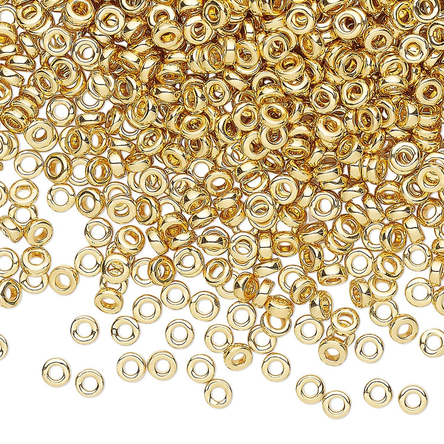 Seed bead, Miyuki, glass, pkg/4g, 3x1.3mm spacer rondelle, opaque 14Kt gold-plated, (SPR3-191).