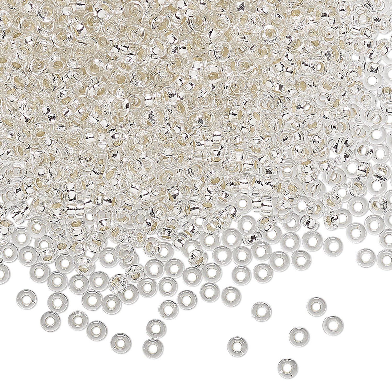 Seed bead, Miyuki, glass, pkg/10g, 2.2x1mm spacer rondelle, transparent silver-lined clear, (SPR2.2-1).