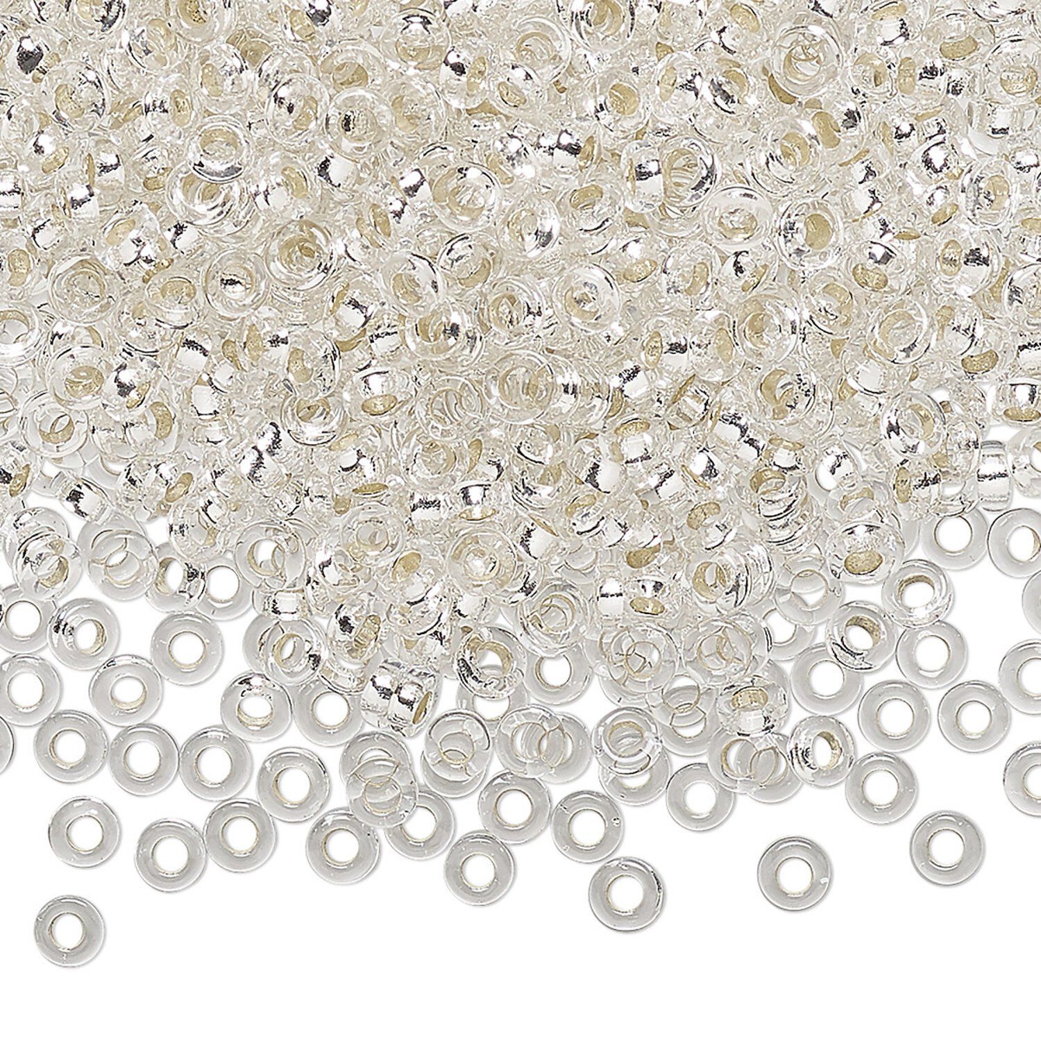 Seed bead, Miyuki, glass, pkg/250g, 3x1.3mm spacer rondelle, transparent silver-lined clear, (SPR3-1).