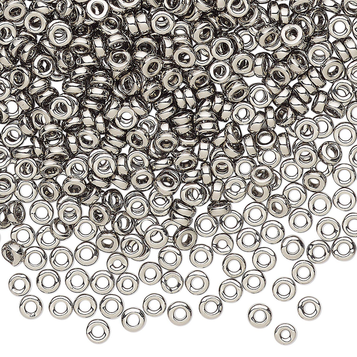 Seed bead, Miyuki, glass, pkg/50g, 3x1.3mm spacer rondelle, opaque nickel-plated, (SPR3-190).