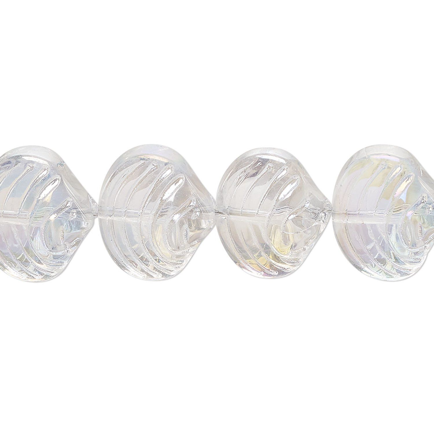 Bead, glass, translucent clear AB, 14x12mm clamshell. Sold per 15-1/2" to 16" strand.