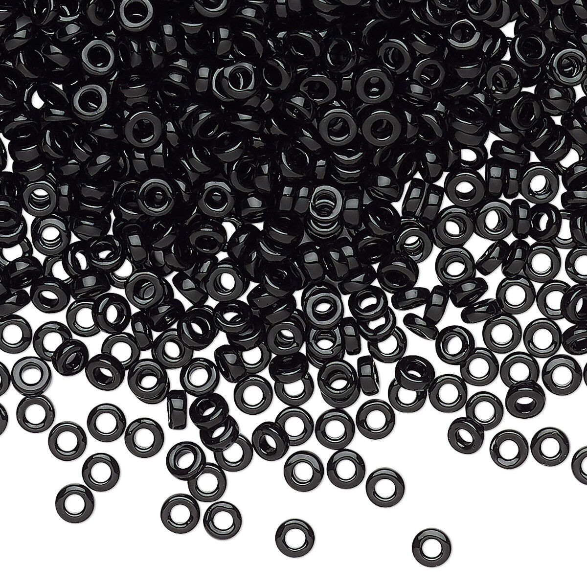 Seed bead, Miyuki, glass, pkg/250g, 3x1.3mm spacer rondelle, opaque black, (SPR3-401).