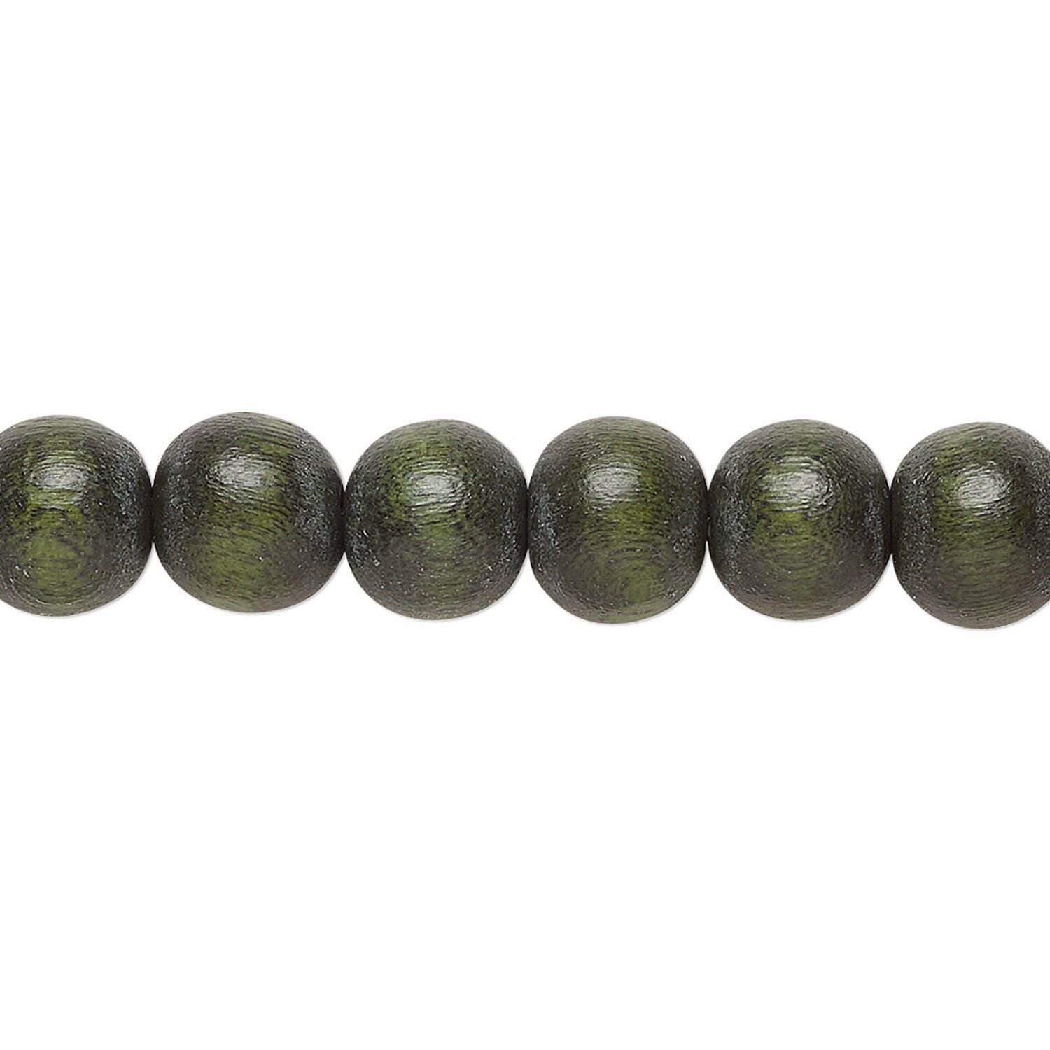 Bead 1pkg1, Taiwanese cheesewood (dyed / waxed), dark forest green, 7-8mm round, 15-1/2 to 16 inches.