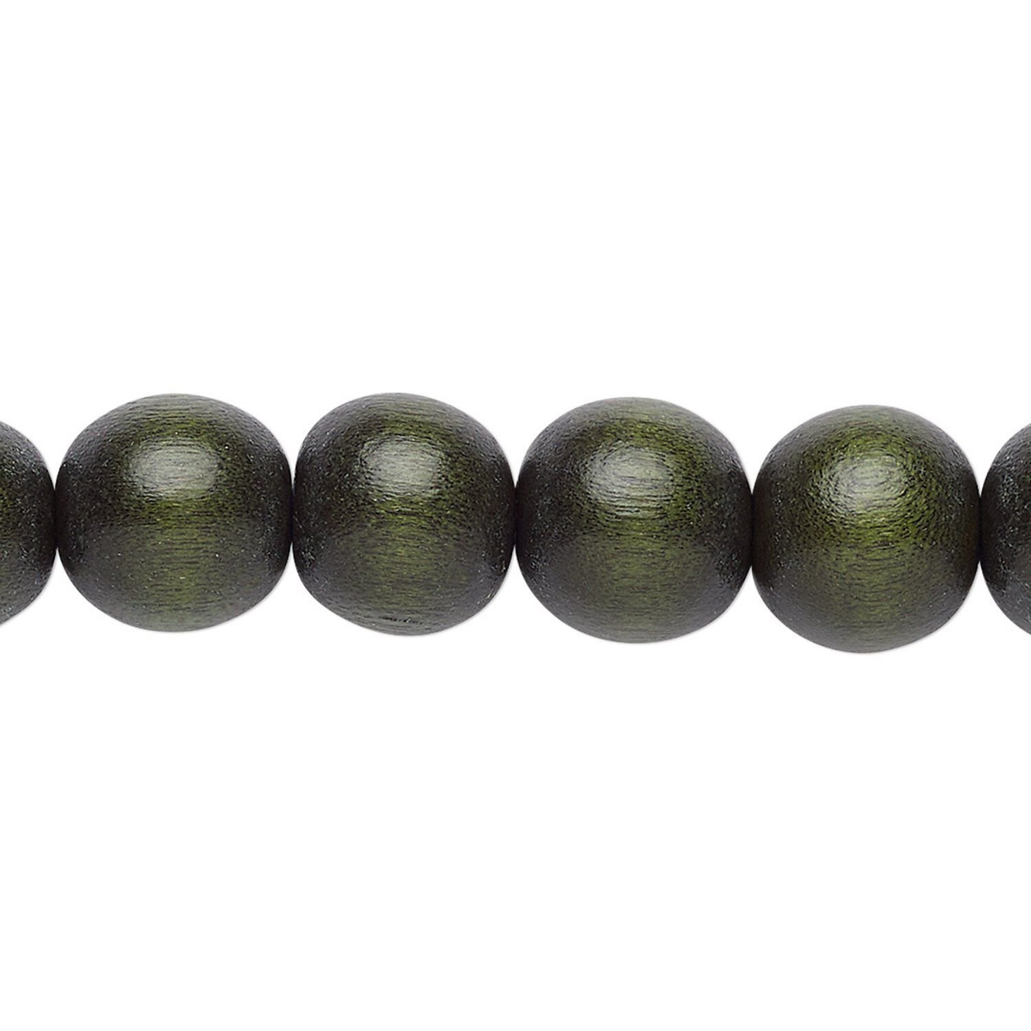 Bead 1pkg1, Taiwanese cheesewood (dyed / waxed), dark forest green, 9-10 round, 15-1/2 to 16 inches.