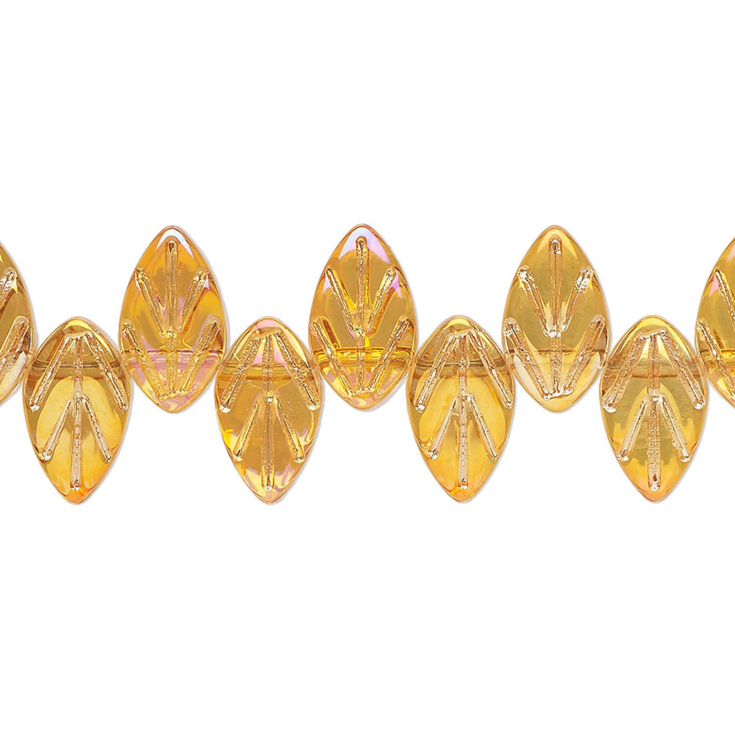 Bring a fresh nature-inspired beauty and vivid color to your projects with these beautiful leaf-shaped beads. Glass is pressed for consistent size and shape.