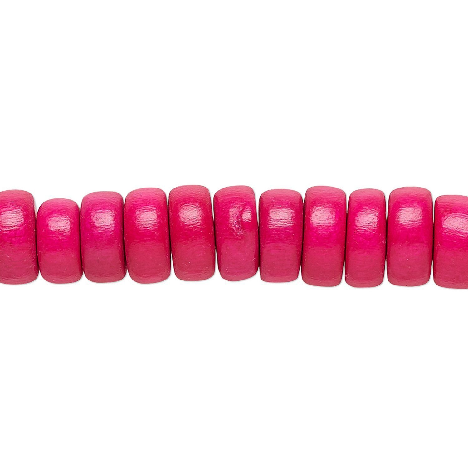 Bead 1pkg1, Taiwanese cheesewood (dyed / waxed), dark pink, 8x4mm rondelle, 15-1/2 to 16 inches.