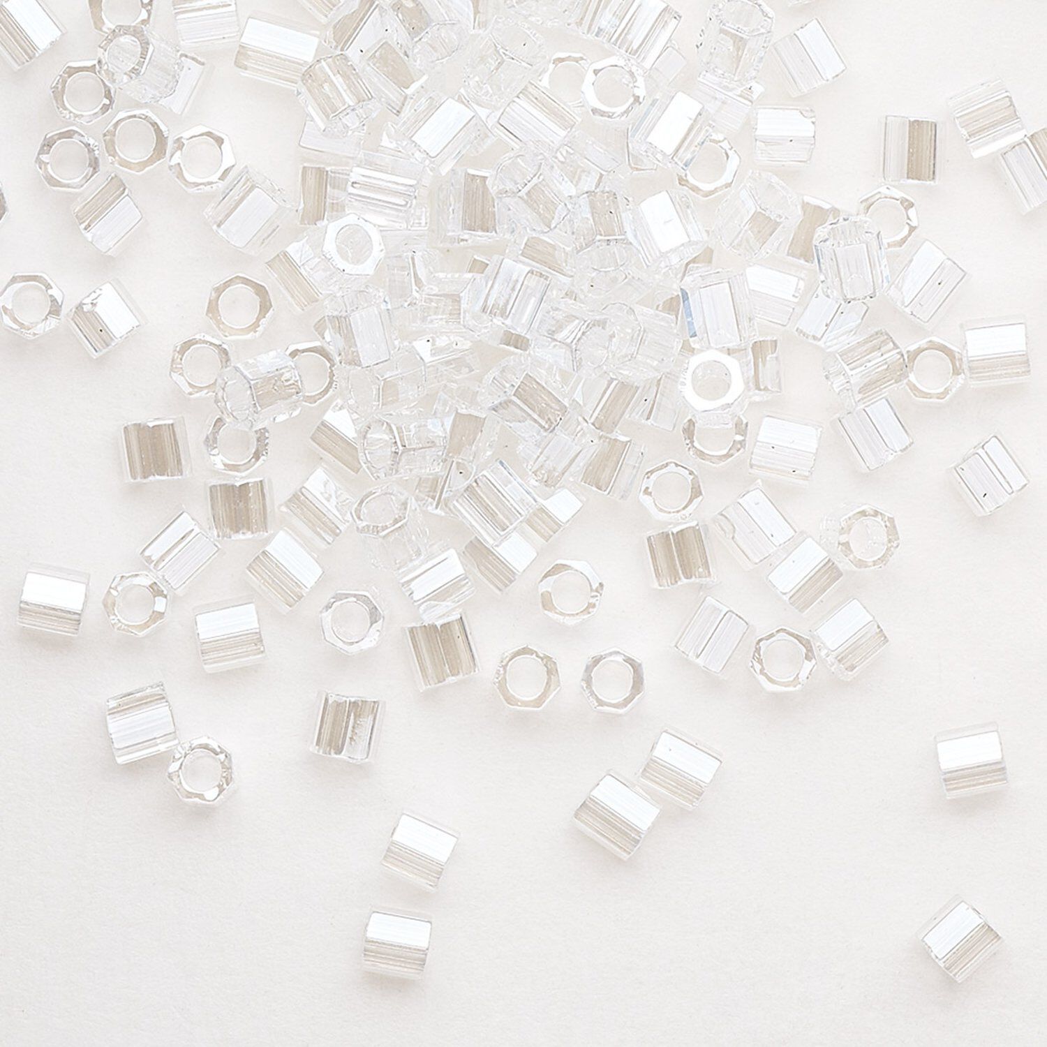 Seed bead, Delica®, glass, pkg/7.5g, #8 cut, translucent luster crystal clear (DBLC-0050).