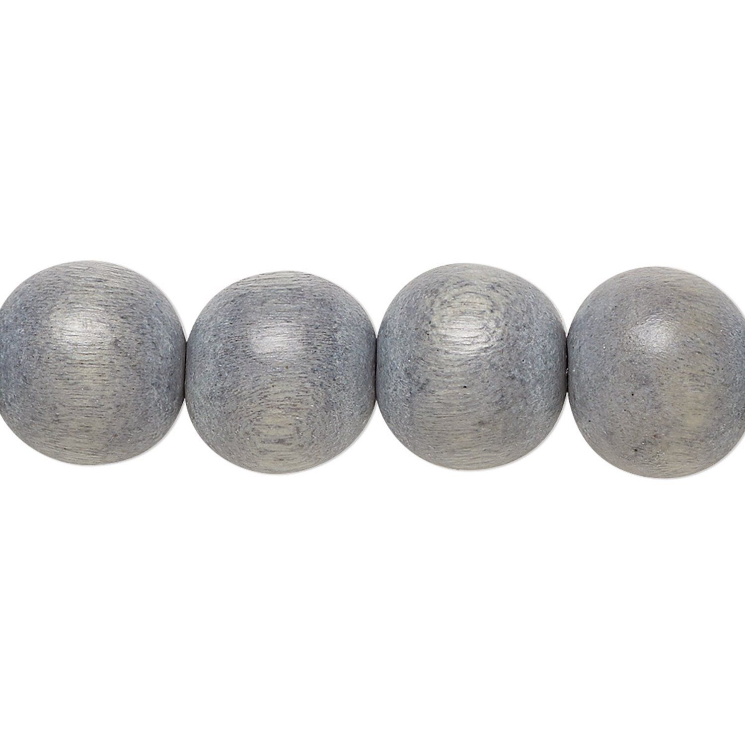 Bead 1pkg1, Taiwanese cheesewood (dyed / waxed), grey, 11-12 round, 15-1/2 to 16 inches.
