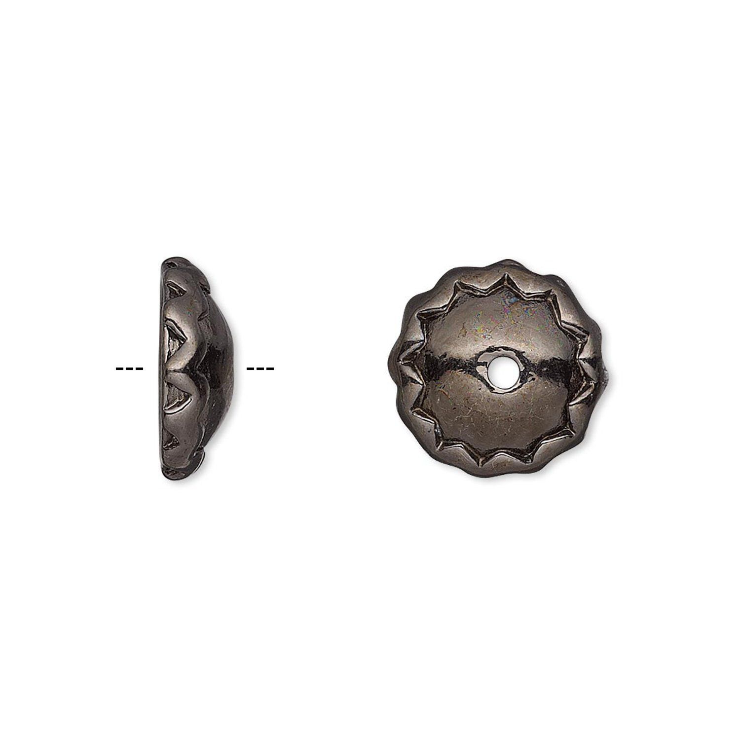 Bead cap, gunmetal-plated pewter (tin-based alloy), 13x4.5mm fluted round, fits 12-14mm bead. Sold per pkg of 2.