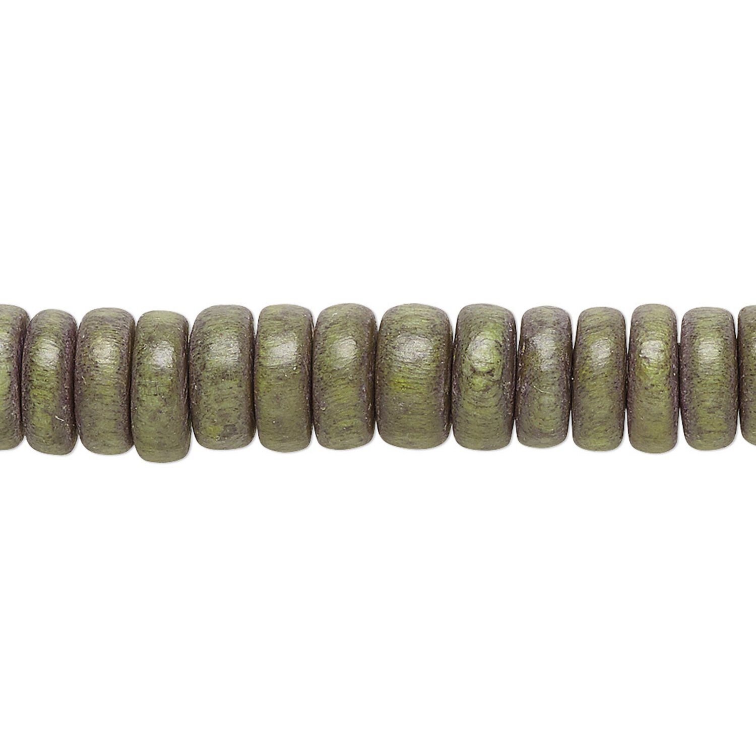 Bead 1pkg1, Taiwanese cheesewood (dyed / waxed), light forest green, 8x4mm rondelle, 15-1/2 to 16 inches.