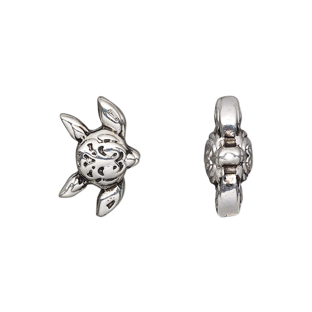 Bead, antique silver-finished "pewter" (zinc-based alloy), 17x11.5mm sea turtle. Sold per pkg of 4.