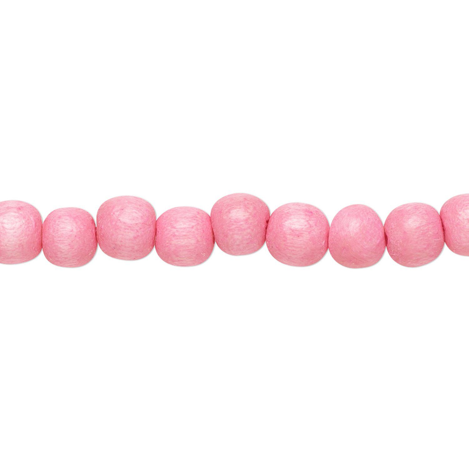 Bead 1pkg1, Taiwanese cheesewood (dyed / waxed), light pink, 5-6mm round, 15-1/2 to 16 inches.
