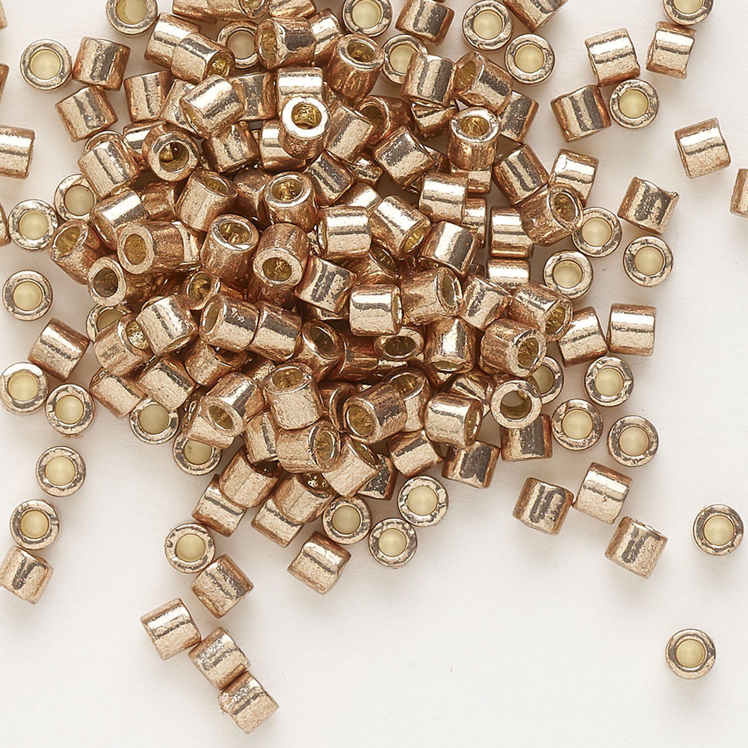 Seed bead, Delica®, glass, pkg/50g, #8 round, Duracoat® opaque galvanized champagne (DBL-1834).
