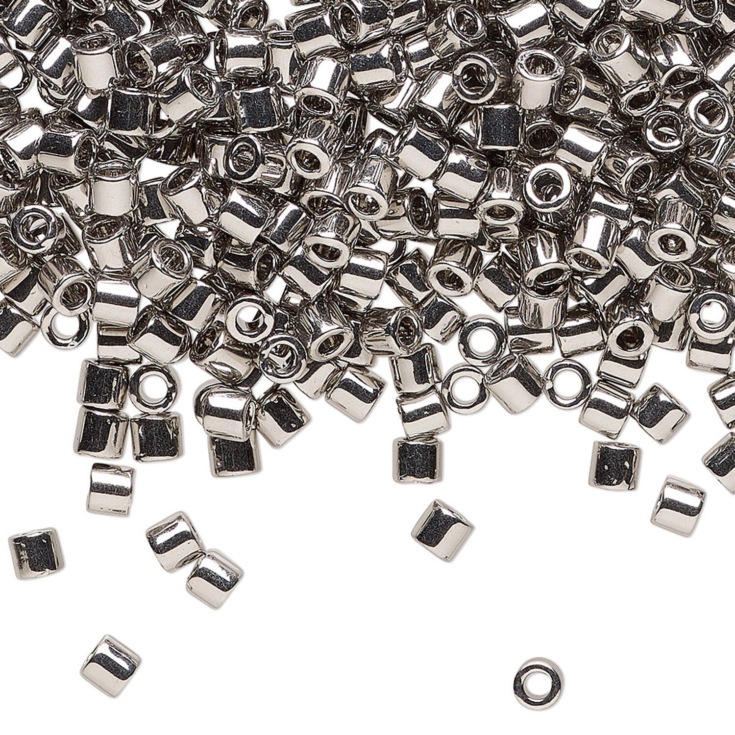 Seed bead, Delica®, glass, pkg/250g, #8 round, opaque palladium-plated (DBL-0038).