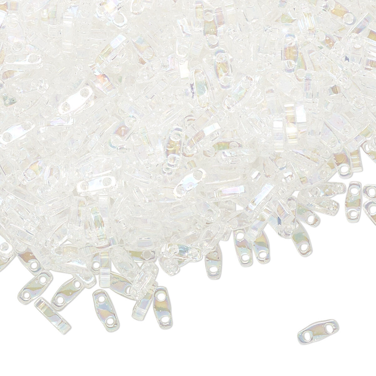 Seed bead, TILA®, glass, pkg/5g, 5x1.2mm quarter tila rectangle, translucent rainbow crystal clear, (QTL-250).